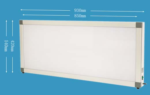 2。外形尺寸:930*540*mm; 观察屏尺寸:850*420mm; 可观看2张14*17寸的胶片,无漏光现象。