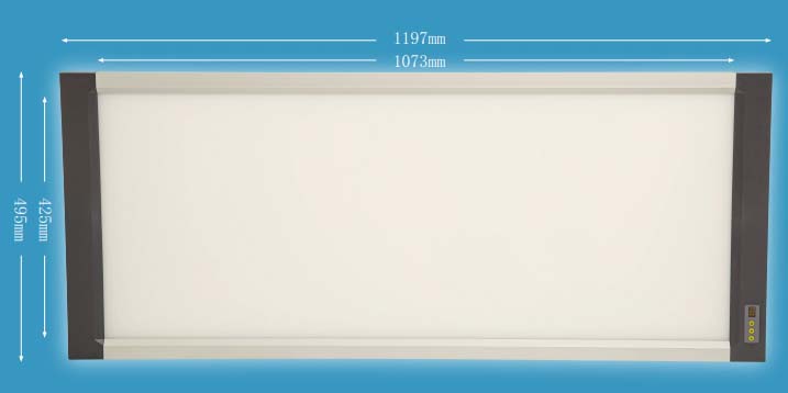 3、外形尺寸:1197*495*25mm; 观察屏尺寸:1073*425mm;可观看3张14*17寸的胶片,无漏光现象。