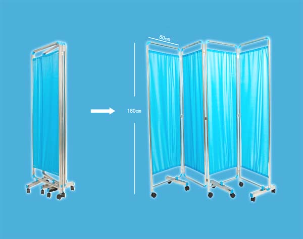 不锈钢屏风参数|型号:四折移动式。180*50cm * 4片,屏风架为2.5cm以上不锈钢材料焊制而成,优质屏风布,底部滑轮稳定.